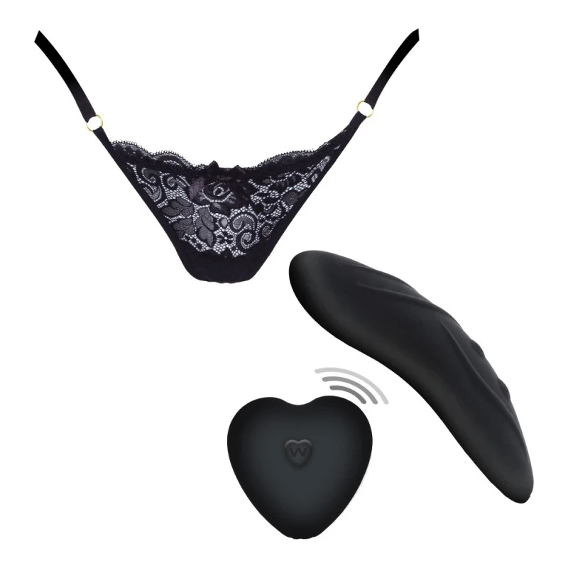 Portez cette culotte vibrante contrôlable via la télécommande sans fil, le stimulateur vibrant en forme de cœur se place dans la culotte en dentelle noire sexy et vous fera hurler de plaisir. Donnez la télécommande à votre partenaire et ce dernier sera ravi de contrôler votre plaisir à distance…